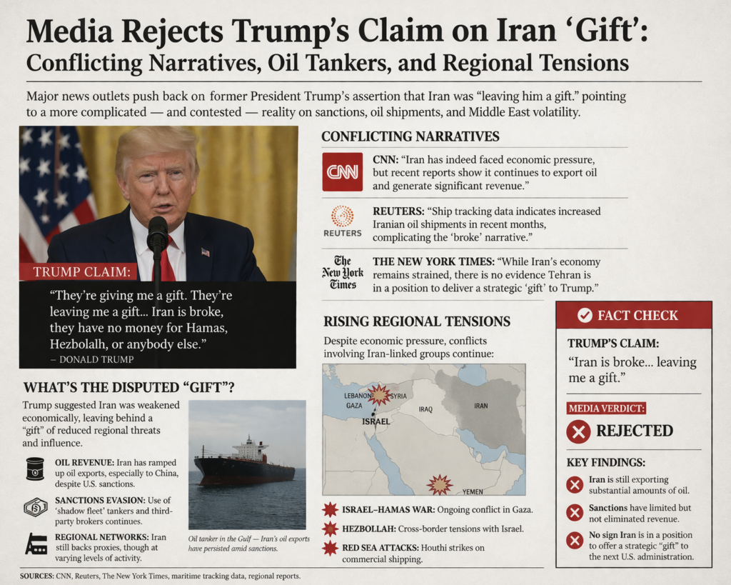 Media Rejects Trump’s Claim on Iran “Gift”: Conflicting Narratives, Oil Tankers, and Regional Tensions Recent developments in the Middle East